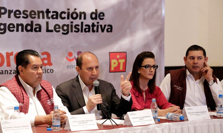 Expedir una ley de austeridad gubernamental, reconsiderar su fuero, además de dar atención prioritaria a los feminicidios, son algunos de los puntos de la agenda legislativa progresista que presentaron los candidatos de la coalición Juntos Haremos Historia. Los candidatos al Senado de la República, Alejando Armenta Mier y Nancy de la Sierra, así como el candidato a la diputación federal por el distrito 12, Fernando Manzanilla, explicaron que con dicha agenda el partido terminará con los "intereses del poder". "Seremos garantes del manejo honesto del dinero público, desde el Congreso vigilaremos que el ejercicio del gasto público por parte del gobierno, siempre sea honesto, transparente y austero", dijo Manzanilla Prieto. En su primer punto, piden expedir una ley de austeridad gubernamental, ya que desde su óptica es ofensivo para la sociedad que los altos funcionarios tengan sueldos excesivos. Piden reconsiderar el fuero para senadores y diputados, señalaron que como representantes del pueblo defienden causas sociales y son proclives a la persecución política. Adelantaron que piensan expedir una Ley de Becarios y Juventud Productiva, con la que apoyarán a jóvenes que abandonan sus estudios por la falta de recursos. Asimismo, quieren expedir una ley que establezca las bases para el desarrollo de la política exterior del país. En su agenda se contempla reformar diversas leyes para castigar el robo de hidrocarburo; piden reformar el Código Nacional de Procedimientos Penales y la Ley General de Acceso de las Mujeres a una Vida Libre de Violencia, para dar atención prioritaria a los feminicidios. También contemplan reformar el Código Nacional de Procedimientos Penales, la Ley Orgánica de la Procuraduría General de la República, y la Ley Federal Contra la Delincuencia Organizada, para facilitar a los ciudadanos la denuncia. Otro segmento es para modificar la Ley de Obras Públicas, con la cual pretenden eliminar la colusión entre servidores públicos e intereses económicos, que dan como resultado trabajos de baja calidad. Dentro de sus propuestas está expedir una Ley General de Agua, la cual garantice el acceso efectivo y seguro a este recurso natural, proporcionar su abasto como servicio público y que se prohíba su privatización. Por último, pidieron Reformar la Ley de Bioseguridad de Organismos Genéticamente Modificados para Prohibir la Siembra de Maíz Transgénico en el país. Ejes1. Transparencia y rendición de cuentas. Trabajar para enfrentar la corrupción y la impunidad. 2. Participación ciudadana. 3. Competitividad y Sostenibilidad. 4. Protección y gobernabilidad. 5. Ingreso y equidad, donde no se puede pensar en vivir en un país o en un estado con condiciones mínimas de ingresos para el empleado. 6. Estado de Derecho, legalidad, legitimidad y justicia. |