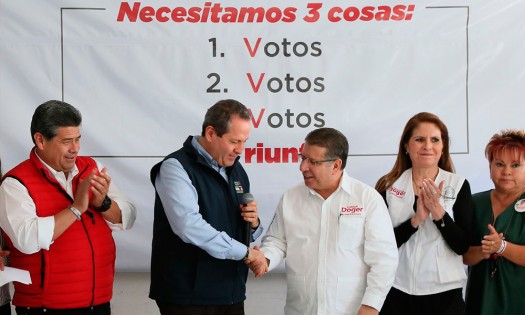 | A menos de un mes de celebrarse las elecciones a gobernador de Puebla, Eruviel Ávila Villegas, vicecoordinador general de campaña del candidato a la presidencia de la República por la coalición Todos por México, José Antonio Meade Kuribreña, consideró que Enrique Doger Guerrero ganará los comicios en la entidad. Mediante un comunicado emitido por el Comité Directivo Estatal (CDE) del Partido Revolucionario Institucional (PRI), el también candidato a Senador aseguró en una reunión sostenida con la militancia que Puebla no está sola, sino que cuenta con toda la estructura nacional de la fuerza política, para las votaciones del primero de julio. "Puebla no está sola, no están solos, cuentan con todo el respaldo Comité Ejecutivo Nacional (CEN) y de nuestro partido, pues están las circunstancias dadas, para que podamos ganar, contundentemente el próximo 1 de julio. Puebla, con Enrique Doger y también la presidencia de la República", enfatizó. Destacó que el PRI tiene total interés en recuperar la gubernatura de Puebla, por lo que desplegaron a 50 mil promotores del voto, junto con otros 33 mil representantes de casilla en todo el territorio estatal, con lo que garantizarán exista toda la transparencia que ratifique la victoria de Doger Guerrero. Confirman visita de Meade; no saben cuándoAnte la falta de visitas del candidato a la presidencia por la coalición Todos por México, José Antonio Meade Kuribreña, el abanderado a la gubernatura de Puebla por el PRI, Enrique Doger Guerrero, descartó que lo tengan abandonado, pues en próximas fechas visitará la entidad. En entrevista, el candidato al gobierno de Puebla confirmó que se reunió el pasado lunes con el equipo de campaña de Meade Kuribreña, en el que les informaron que aún analizan visitar la entidad, pero no les dieron ni fecha concreta de un encuentro o cuántas giras realizarían en conjunto. "Ayer (4 de junio) estuvo con nosotros el vicecoordinador de la campaña, Eruviel Ávila Villegas, y nos comentó que sí se tienen programadas vistas del candidato Meade, en fechas próximas se nos dirán, pero no sé cuántas, por lo menos será una", mencionó. La última visita que tuvo el exsecretario de Hacienda y Crédito Público (SHCP) en Puebla ocurrió el 3 de mayo, cuando acudió Atlixco, donde se estuvo con empresarios, a la par sostuvo un encuentro con los candidatos estatales y federales del PRI, convirtiéndose en su única gira por la entidad. Doger Guerrero consideró que, sin importar a que tanto el candidato por la coalición Por México al Frente, Ricardo Anaya Cortés, como su homólogo del bloque de Juntos Haremos Historia, Andrés Manuel López Obrador, visitaron en campaña a Puebla en múltiples ocasiones, sea un motivo de desunión en el tricolor.