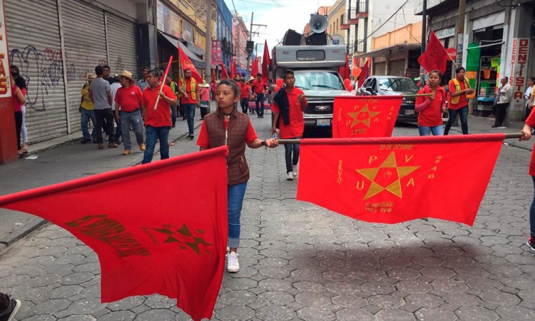 Este domingo se realizó la marcha por los 45 años de la creación de la Unión Popular de Vendedores Ambulantes (UPVA) 28 de Octubre, Rubén Sarabia alias Simitrio, líder de la organización, aseguró que la movilización se vivió con miedo pues los amenazaron con asesinar en este festejo a sus hijos, Atl Tonatihu y Xihuel Sarabia. Alrededor de 500 personas vestidas de rojo llegaron a la marcha que inició en el Mercado Hidalgo para finalizar en el Zócalo de la ciudad de Puebla. Rubén Sarabia recordó que la fundación inició luego de que fueran desalojados de las calles del Centro Histórico, comentó que en coordinación con activistas y algunos comerciantes en 1973 crearon la UPVA. "Acordamos tomar las calles a punta de fregadazos contra las fuerzas represivas. Lo que hicimos ese 28 de octubre fue entrarle a todo, para defender a las masas de estudiantes, maestros y campesinos (...) durante estos años impedimos que el gobierno nos desalojara y arrumbara en las calles de la periferia de la ciudad", expresó. Los participantes mencionaron que la UPVA ha defendido las calles como fuente de trabajo, además que la organización apoya a los trabajadores del campo y por ello, exigen un mercado más céntrico y funcional que tenga cupo para un gran porcentaje de comerciantes. Incluso comentaron que, gracias a ellos, la ciudadanía tiene varios beneficios, como la construcción de la central camionera, la central de abastos y tres centros comerciales. "No luchamos sólo por nuestras demandas particulares sino en beneficio del municipio y sus habitantes', manifestaron. También te puede interesar: La 28 de Octubre se deslinda de balacera en La FayucaSimitrio adelantó que esta semana espera reunirse con la alcaldesa, Claudia Rivera Vivanco, para tocar temas de seguridad, ya que en semanas anteriores los amenazaron con asesinar a Atl Tonattihu Sarabia y a Xihuel Sarabia, ambos hijos suyos. Y hasta el momento no hay avances del asesinato de Meztli Sarabia Reyna. Para finalizar, dijo que no apoyarán ni a Martha Erika Alonso Hidalgo ni a Miguel Barbosa Huerta, porque existen muchos conflictos en sus grupos y será hasta que haya una resolución final del Tribunal Federal que buscarán reunirse con el nuevo gobernador o gobernadora, pues temen que si en estos momentos tienen acercamiento, sean blancos para nuevos ataques y asesinatos.