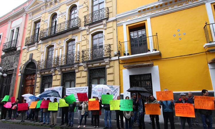 Exempleados del Gobierno del Estado se manifestaron frente al Congreso local en exigencia de la reinstalación de sus cargos o pago de indemnizaciones de acuerdo a la ley. Esto fue previo a la sesión solemne del Poder Legislativo donde se recibiría el último informe de gobierno del titular del Poder Ejecutivo de Puebla, José Antonio Gali Fayad. Desde temprano, la zona del centro que rodea el recinto legislativo estuvo resguardada por elementos de la Policía Estatal, esto luego de que se anunciaran posibles manifestaciones, entre estas las de transportistas que exigen un incremento al pasaje; no obstante, no se llevó a cabo. También lee: Otra manifestación que se tenía prevista era la de la Unión Popular de Vendedores Ambulantes (UPVA) 28 de octubre; sin embargo, fue cancelada ante las condiciones climáticas del día. En la sede de la presentación del informe de gobierno de Gali Fayad, la circulación se vio afectada tras el cierre parcial para vehículos y personas de las principales avenidas aledañas a Los Fuertes de Loreto. El paso en la Calzada Ignacio Zaragoza se cerró con una grúa, con elementos de la Policía Municipal así como con vallas metálicas que también obstruían la vista de los curiosos hacia el interior de parque. En el Auditorio Reforma, un fuerte operativo policiaco se encargó de restringir el paso a toda persona ajena al evento, quienes además cuestionaban a los transeúntes sobre la razón de su presencia y les exigían una identificación o acreditación.