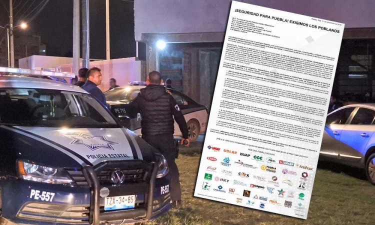 A través de un desplegado nacional, universidades poblanas integrantes del Consorcio Universitario, empresarios adheridos al Consejo Coordinador Empresarial (CCE) y organizaciones civiles, exigieron a los tres órdenes de Gobierno del Estado de Puebla sumar esfuerzos para combatir la inseguridad, la cual consideran va a la alza; además piden trabajar puntualmente en delitos como robos, homicidios, hurto de gasolina y secuestros. También puedes leer: Asesinan en Chietla a otro comerciante En el desplegado publicado en el periódico Reforma señalaron que de enero a octubre, se registraron mil 620 asesinatos, afectando principalmente a mujeres y estudiantes, 41 secuestros, 153 extorsiones y 5 mil 15 robos con violencia de vehículos.