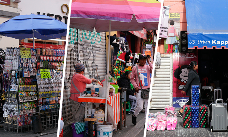 La calle 5 de Mayo, la 8 Poniente, la avenida 10 Poniente y a las afueras de la Plaza la Victoria siguen siendo los puntos con más presencia de ambulantaje, lo que ha generado pérdidas económicas en el comercio formal, del aumento, de 50 por ciento que solían tener hace tres años, este sólo han logrado 20 por ciento, reveló José Juan Ayala, líder de los comerciantes del Centro Histórico. En entrevista, el líder de los comerciantes informó que aproximadamente 800 negocios del primer cuadro de la ciudad están en riesgo de cerrar si el Ayuntamiento de Puebla no regula a los ambulantes durante la época decembrina. Hay policías, aceptó que el núcleo de la ciudad es seguro, empero, no están siendo retirados, también lamentó que una época que solía ser de grandes ventas hasta el momento no tenga un repunte.