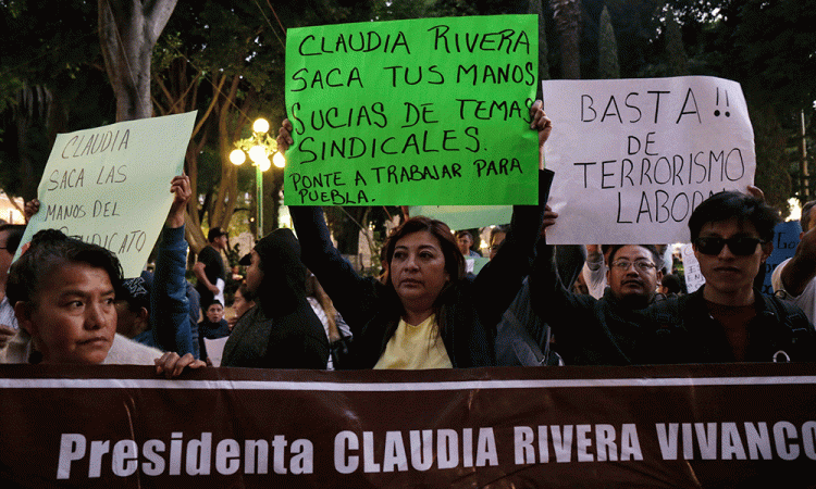 Decenas de inconformes con el líder del Sindicato Único de Trabajadores del Ayuntamiento de Puebla, Instituciones Paramunicipales y Organismos Públicos Descentralizados (Suethapipopd) "Licenciado Benito Juárez", Gonzalo Juárez Méndez, se manifestaron en el Centro Histórico capitalino. Fotos de Karen ROJASDesde las 17 horas del 22 de enero, los disidentes comenzaron su manifestación en el Paseo Bravo, en dirección al Palacio Municipal, donde solicitaron la destitución del secretario general del Suethapipopd, Gonzalo Juárez Méndez, pues acusaron estar inconformes con la forma en la que administró a la organización. También puedes leer: Descarta Gonzalo Juárez irregularidades en remodelación de casaTras la llegada del colectivo de inconformes, los recibió en el Palacio Municipal la Secretaria General del Ayuntamiento, Liz Aceves López, pidiéndole que se entablara una mesa de diálogo, por lo que les prometió que será en el transcurso de hoy cuando les den respuesta, para fijar tanto la hora como el lugar. En un breve mensaje, Aceves López puntualizó que no se entrometerán en la vida interna del Suethapipopd, pero escucharán sus inconformidades en la reunión que sostendrán fuera de horario laboral, para que los representantes de los inconformes puedan acudir a exponer sus quejas.