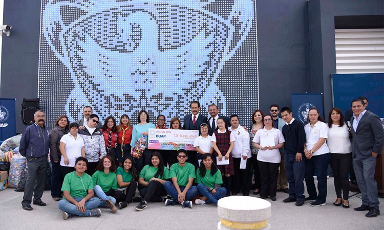 La Benemérita Universidad Autónoma de Puebla (BUAP) entregó una tonelada y media de tapas de plástico a la Fundación Down de Puebla A.C, acción que permitirá obtener recursos para continuar con su labor a favor de menores con este síndrome. Como parte del programa Tapatón Puebla 2019, el rector Alfonso Esparza mencionó "es muy gratificante colaborar por primera ocasión en esta labor altruista, así como ser partícipe en el cuidado del medio ambiente, sobre todo de la vida marítima, mediante la separación de residuos". Además, Esparza reconoció el entusiasmo de los estudiantes de las diferentes unidades académicas, ya que gracias a su constancia a familiares y amigos, se logró esta meta en beneficio de la citada fundación. También puedes leer: Apoya BUAP en tareas de reconstrucciónPor su parte, Yolanda Salamanca Pacheco, directora Administrativa de la Fundación Down de Puebla A.C, entregó un reconocimiento al rector Alfonso Esparza, mientras que Paola Aguilar Guadarrama, alumna de la fundación, expresó unas palabras de agradecimiento a la Institución. También, Manuel Sandoval Delgado, coordinador General de Desarrollo Sustentable, informó que en los centros de acopio de la BUAP se logró juntar una tonelada y media de tapas; de este total, 90 por ciento fueron recolectadas por la comunidad universitaria y el restante por empresas y población civil. Además, adelantó que la Preparatoria Benito Juárez García cuenta con otra tonelada que será entregada posteriormente a la fundación; agradeció a las facultades de Arquitectura, Lenguas, Derecho y Ciencias Sociales, Ciencias de la Electrónica, Ingeniería, Ciencias Biológicas y la Preparatoria Emiliano Zapata, entre otras, por su importante participación en el programa. |
