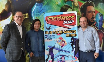 Una vez más el mundo de las historietas y la creatividad llegará a la BUAP durante la Feria Internacional de Cómics (FICÓMICS) 2019, que reunirá a 50 autores de cómic, nacionales y extranjeros, en el Centro de Convenciones de Ciudad Universitaria, del 15 al 17 de agosto. En rueda de prensa, Alfredo Avendaño Arenaza, titular de la Dirección General de Bibliotecas de la BUAP, señaló que el objetivo de esta feria es fomentar el hábito de la lectura entre los jóvenes a través del cómic, además de brindar actividades de aprendizaje y desarrollo de habilidades impartidas por profesionales de la narrativa gráfica.