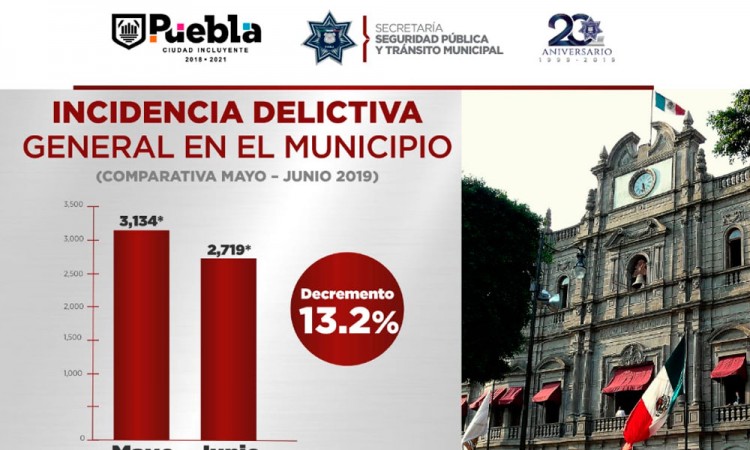 La Secretaría de Seguridad Pública y Tránsito Municipal (SSPTM), destacó que la capital del estado registró un decremento del 13.2 por ciento en la incidencia delictiva general, en comparativa mayo - junio del presente año. De acuerdo con el último reporte del Secretariado Ejecutivo del Sistema Nacional de Seguridad Pública (SESNSP), en Puebla se registraron oficialmente 2 mil 719 delitos en junio, lo que deriva en un 13.2 por ciento menos que el mes anterior (3 mil 134). Durante el mismo periodo, el estado de Puebla registró 9.2 por ciento menos delitos. Según cifras del Secretariado, la entidad alcanzó siete mil 561 denuncias durante el mes de mayo, sin embargo, para junio los agentes del Ministerio Público aperturaron seis mil 865 carpetas, es decir, 696 menos. También puedes leer: Diputados faltistas serán sancionados: Ley OrgánicaAsimismo, durante el mes de mayo se contabilizaron 180 mil 379 Carpetas de Investigación en la República Mexicana; en contraste, durante el mes de junio se presentaron 170 mil 738 denuncias. Tomando en cuenta lo anterior, se puede observar que la incidencia en el país tuvo un decremento del 5.3 por ciento. |