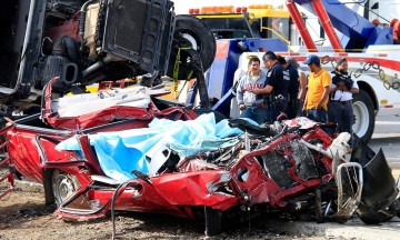 Saldo de seis trabajadores de la construcción muertos, dejó un aparatoso accidente ocurrido ayer en la autopista Puebla-Orizaba, con dirección a la Angelópolis. Otros cinco empleados resultaron lesionados cuando un tráiler cargado con 43 toneladas de maíz cayó encima de la camioneta a bordo de la cual viajaban. De acuerdo con compañeros de oficio de los hoy occisos, habían salido de su natal Xocotla, en el municipio de Coscomatepec, Veracruz, a 15 minutos de Córdoba. Como cada lunes abordaron una camioneta Nissan Pick Up roja para dirigirse a laborar como alarifes en Puebla, en la zona de Angelópolis. Así, 11 hombres en total, de entre 16 y 39 años de edad, abordaron la camioneta. Estaban a 20 minutos de llegar a su destino cuando poco antes de las 8 horas ocurrió el mortal percance, casi frente a la gasera Tomza, en el parque industrial Chachapa. Un tráiler de la empresa Tres Guerreros, cargado con 43 toneladas de maíz, que circulaba con dirección a Veracruz, derribó el muro metálico de contención, después invadió los carriles que conducen hacia Puebla, así la pesada unidad volcó sobre su costado derecho. El automotor quedó "mirando" con sentido a Puebla, encima de la cabina de la Nissan roja. Los tres tripulantes del asiento trasero, así como el conductor y el copiloto de la Nissan, quedaron aplastados por el tractocamión. No obstante, quienes viajaban en la batea salieron proyectados; uno de ellos murió minutos después. Los cinco lesionados fueron atendidos por paramédicos de Caminos y Puentes Federales (Capufe), así como de Cruz Roja. Después los llevaron a diferentes hospitales de la capital poblana. Mientras, personal de Capufe, con el equipo de rescate urbano, debió hacer cortes a la unidad para sacar los cadáveres que quedaron en el interior y que pudiera realizarse el levantamiento de los mismos, hecho que corrió a cargo de la Policía Federal, con el apoyo de trabajadores del Servicio Forense de la Fiscalía General del Estado (FGE). El conductor del tráiler, de acuerdo con testigos, intentó escapar, pero fue capturado y después entregado a la Policía Federal para que responda por el percance. Con el Nuevo Sistema de Justicia Penal, este hombre quedará libre si logra algún acuerdo con los deudos. Los familiares de los finados llegaron hasta el lugar para conocer lo ocurrido. Mientras, algunas personas contactaron con el alcalde de Coscomatepec, Manuel Álvarez, quien se comprometió a encargarse de los gastos funerarios. Las personas que perdieron la vida son Alberto Rosas González, de 26 años de edad, conductor de la unidad; Marcelino Hernández Tiburcio, de 21 años; Oliverio Hernández Tiburcio, de 30; Antonio Hernández Evaristo, de 21; Miguel Hernández, de 39; y Alfredo Hernández, de 16. Los seis cadáveres fueron trasladados al anfiteatro de la ciudad de Puebla, donde se les practicó la necropsia de rigor. Los cuerpos serán trasladados a su población de origen una vez que la FGE haga la entrega correspondiente de los mismos. |