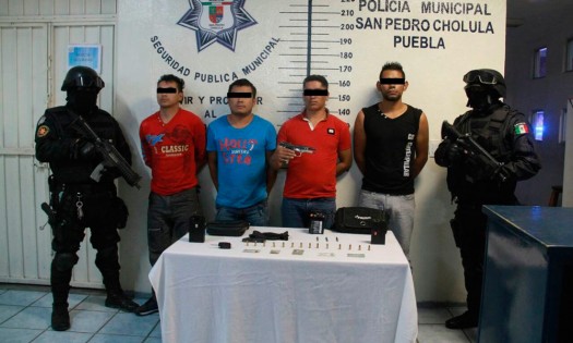 Una banda de sujetos presumiblemente vinculada al robo de vehículos con mercancía fue detenida por policías de San Pedro Cholula en San Agustín Calvario. Se les localizó un arma de fuego y un inhibidor de señal GPS. La detención ocurrió el pasado miércoles alrededor de las 18:30 horas, cuando los policías detectaron un auto con vidrios polarizados y cuatro hombres en actitud inusual a bordo. Es por ello que en la carretera Paso de Cortés y calle 5 de Mayo, en el municipio de San Pedro Cholula, les marcaron el alto. Al notar que se acercaba la patrulla, los ocupantes intentaron darse a la fuga pero no lo lograron. En el Volkswagen, Jetta, color negro, con placas 335-YTH del Distrito Federal, encontraron una mochila tipo mariconera, en donde se localizó un arma de fuego calibre 9 milímetros, así como un inhibidor de señal. A bordo viajaban Luis Antonio M B, de 20 años de edad, Alejandro M B, de 23 años de edad, Miguel Ángel R R, de 32 años y Fermín J R, de 31 años. Los tres primeros son originarios del Estado de México y el cuarto de El Verde, Puebla. Debido a que no contaban con el permiso correspondiente para la portación del arma de fuego, se procedió al aseguramiento. Los cuatro probables delincuentes fueron remitidos ante el Agente del Ministerio Público Federal, en las instalaciones de la Procuraduría General de la República (PGR). Por el arma y el inhibidor de señal se presume se trata de una banda dedicada al robo de vehículos contra mercancía. |
