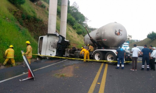 Un tráiler tipo pipa, el cual iba vacío, se salió de la carpeta asfáltica en el kilómetro 131+350 de la autopista Tulancingo-Tihuatlán, tramo Tejocotal-Nuevo Necaxa, en Huauchinango, y chocó contra los pilares de concreto que sostienen un puente. El tractocamión blanco quedó destrozado y la pipa atravesada; la Policía Federal de la Estación Huauchinango dio paso por goteó. El percance no dejó víctimas mortales, sólo daños materiales. El tractocamión portaba placas 222DC1 del Servicio Público Federal (SPF), mientras que el tanque metálicas 356VS3, también del SPF. El percance ocurrió alrededor de las 17:30 horas del jueves. |
