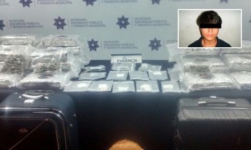 Una gran cantidad de drogas fue detectada y asegurada por uniformados del grupo K-9 de la Secretaría de Seguridad Pública y Tránsito Municipal (SSPTM), durante un operativo sorpresa en la central camionera CAPU. El hombre que transportaba las maletas con marihuana, hachís, metanfetaminas y LSD las sustancias prohibidas, que tenían como destino Veracruz y Playa del Carmen, en Quintana Roo, quedó detenido y a disposición de la Procuraduría General de la República (PGR). Fuentes policiales indicaron que la droga asegurada asciende a las siguientes cantidades: 16 kilos 309 gramos de hierba verde con características de la marihuana; 308 gramos de una pasta color café con las características del hachís; 383 pastillas, verdes y cafés, con características de las metanfetaminas; y 375 cuadros de papel con características del LSD. El hombre que transportaba toda esta droga quedó detenido en el acto y fue remitido ante las autoridades ministeriales para que se le finquen responsabilidades. Este es uno de los golpes más fuertes que se ha dado en la ciudad a los grupos de narcotráfico. Se estima que el valor de la droga en el marcado negro tiene un valor estimado en cientos de miles de pesos. |