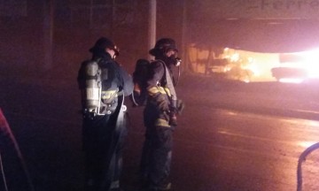 El incendio de la bodega de la empresa textil Decoplas, según se observa en una lona en el exterior, fue reportado 15 minutos antes de las 23 horas del viernes. Cuando los bomberos llegaron, encontraron que el sitio estaba en fase de quemado libre. Las llamas alcanzaban cerca de 20 metros de altura y el humo que salía del lugar era espeso y sofocante. Al evaluar el siniestro, los vulcanos se concentraron en contener el fuego y evitar que se propagara a los edificios de la 19 Norte, departamentos donde habitan estudiantes, y hacia la 17 Norte, donde hay otras bodegas comerciales. Comenzaron a atacar el fuego de forma directa por la parte de atrás, en el frente era más complicado porque la Comisión Federal de Electricidad (CFE) tardó casi una hora en cortar la energía eléctrica del cableado que pasa por el lugar. Fue hasta después de la medianoche cuando la CFE cortó la corriente y los bomberos pudieron atacar las llamas por la parte frontal. Una vez que comenzaron los trabajos de esa forma, sólo requirieron 15 minutos para apagar el fuego en su totalidad. Se quemaron en el lugar rollos de tela y plástico, según indicaron fuentes extraoficiales, y aunque no se especificó la cantidad se estima que eran varias toneladas. Además, también resultaron afectados 2 vehículos: 2 de ellos se quemaron al 100 por ciento y 1 más sólo de forma parcial. La bodega tiene un área de 750 metros cuadrados, donde el fuego acabó con todo lo que encontró a su paso. Los portones y parte de la estructura del techo colapsaron; se desconoce qué causó el siniestro. Se espera que personal de Protección Civil municipal haga las evaluaciones del caso para determinar el origen del incendio, así como los resultados de los dictámenes para saber si la empresa será sancionada o clausurada. |