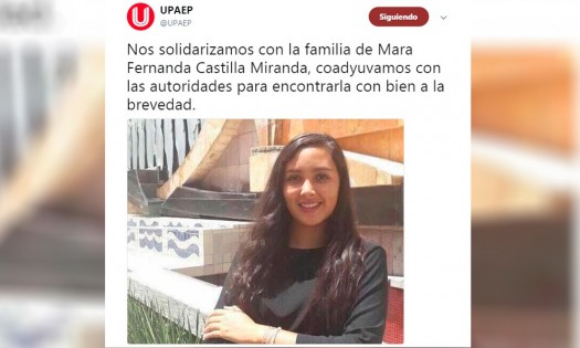 Tras cuatro días de desaparecida, los familiares y amigos de Mara Fernanda Castilla Miranda, de 19 años de edad, siguen implementando una intensa campaña de búsqueda en redes sociales y haciendo presión a las autoridades para que agilicen las investigaciones para dar con el paradero de la joven estudiante de la Facultad de Ciencias Políticas de la UPAEP. En los mensajes que difunden en redes sociales la constante es: "Queremos a Mara sana y a salvo". Hasta el momento se sabe que el conductor socio de la empresa Cabify, el cual presuntamente brindó servicio a Mara, y por lo tanto fue de las últimas personas en verla, acudió a rendir declaración ante la Fiscalía General del Estado. Trascendió que este hombre, que es conductor de un Chevrolet, Sonic, de Cabify, llevó a la chica de un bar de San Andrés Cholula al fraccionamiento donde vive la joven mujer, el cual está ubicado en las inmediaciones de la Recta a Cholula. Sin embargo, aunque se sabe que Mara abordó la unidad nunca llegó a su casa y desde la madrugada del pasado viernes 8 de septiembre se encuentra desaparecida. Por lo antes descrito uno de los principales sospechosos por su desaparición, desde un principio fue el conductor que le brindó el servicio, quien ya acudió a rendir declaración y ahora la Fiscalía General del Estado (FGE) continúa con las investigaciones del caso. Preocupa a las autoridades la situación de la joven mujer, sobretodo su situación se considera más riesgosa con forme siguen pasando las horas. Por ello están haciendo los esfuerzos necesarios para localizar a la joven originaria del estado de Veracruz.