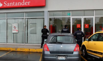 Un solitario sujeto ingresó armado a la sucursal del banco Santander de San José Mayorazgo. El delincuente amagó al personal bancario y lo despojó de dinero en efectivo que tenían en al menos una de las ventanillas. El robo se dio alrededor de las 15:25 horas del lunes, en el establecimiento ubicado en la 11 Sur, 10162, en la ciudad de Puebla. Versiones policiales indicaron que el hombre llegó y se hizo pasar por usuario, pero después sacó a relucir un arma de fuego y amagó a los empleados, a quienes les exigió que entregaran todo el dinero. Así fue como dieron el efectivo de al menos una de las ventanillas y después el sujeto escapó a pie. Se desconoce el rumbo que tomó, según indicaron los afectados a los agentes de la Policía Municipal que atendieron la alerta. De las características del ladrón los empleados del banco dijeron que era un hombre con chaleco negro, camisa a cuadros, pantalón de mezclilla, zapatos negros y boina verde. Pese a que se efectuó un operativo para tratar de dar con él, las autoridades no pudieron localizarlo. |