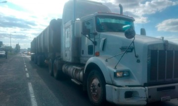 Un tráiler tipo doble tolva fue recuperado por elementos policiales momentos después de ser robado en Atlixco; se le halló en la caseta de la Vía Atlixcáyotl y trascendió que hubo dos detenidos. Se trata de un tractocamión blanco marca Kenworth KenMex, con placas 684-EX-8 del Servicio Público Federal, el cual llevaba acopladas dos tolvas. El vehículo, al parecer, iba custodiado por sujetos a bordo de un SEAT Ibiza amarillo, cuyos ocupantes pudieron escapar. Fotos: Jorge FonsecaLa unidad robada fue recuperada en la caseta de la Vía Atlixcáyotl, pues fue ubicada por medio de un fuerte dispositivo de seguridad. Trascendió que hubo dos asaltantes detenidos: Raúl V, de 35 años, y Martín G, de 23 años, capturados por policías de San Andrés Cholula. Los presuntos y el vehículo robado fueron remitidos al C-5 ante el Ministerio Público de Flagrancias. |