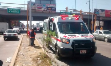 Desde el puente del Periférico Ecológico cayó un hombre de 24 años a la 11 Sur, se presume que se trata de un adicto a las drogas que inhalaba solventes y perdió el equilibrio para caer cerca de 6 metros de altura. Acabó justo en el área donde no cruzan vehículos y esto evitó que fuera atropellado. Se fracturó una de las piernas; paramédicos de Cruz Roja lo trasladaron a un nosocomio en la ciudad de Puebla. Foto: Jorge FonsecaEl hombre que sufrió el percance es Juan José, de 24 años. Fue minutos antes de las 12 horas cuando ocurrió el incidente. Según testigos el hombre es adicto a "la mona", estopa o trapo mojado con algún solvente, como thinner. El joven se estaba moneando sentado en el puente. Al parecer por efecto de las drogas habría caído y las personas que pasaban por el lugar lo resguardaron y llamaron a los números de emergencias. Su estado de salud fue considerado como estable. |