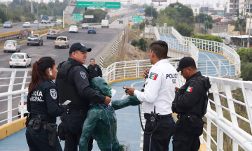 El reporte de un hombre colgado en el Periférico Ecológico y el retorno a Camino Real a Cholula, en el puente de la ciclovía, movilizó a los cuerpos policiales de San Andrés Cholula y de Seguridad Pública del Estado. Los uniformados arribaron rápidamente y corroboraron que se trataba de una broma de muy mal gusto. En el puente colgaba una figura humanoide de cartón, pintada de verde, dicho muñeco carecía de la cintura hacia abajo. Estaba sujeto con una cuerda de plástico y por si fuera poco tenía escrito un mensaje suicida. Los uniformados de San Andrés, así como de Vialidad del Estado y de la Policía Estatal, se encargaron de retirar el muñeco para evitar confusiones a las personas. Se desconoce quién colocó dicho muñeco en el lugar. El muñeco fue llevado por los policías de San Andrés. Tan pronto lo retiraron, los policías se marcharon y todo quedó en calma nuevamente en ese lugar. |