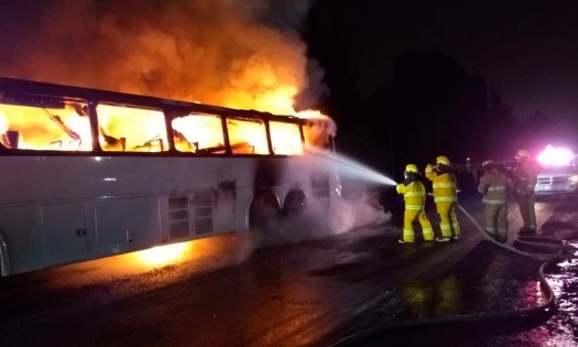 Un autobús turístico que transportaba a 45 personas más el conductor, ardió la madrugada del miércoles sobre la carretera federal Puebla-Atlixco, a la altura de Chipilo. Lo que sería un día de diversión, pues se trata de un autobús turístico con placas 277RP3, que se dirigía a Izúcar de Matamoros, terminó en un tremendo susto. Todos los tripulantes lograron evacuar la unidad y salieron ilesos, mientras que el conductor se retiró. El percance ocurrió alrededor de la 1:30 horas del miércoles. Bomberos de San Andrés Cholula acudieron para aplicar chorros de agua a presión y extinguir las llamas. Se desconoce qué ocasionó el incidente. |