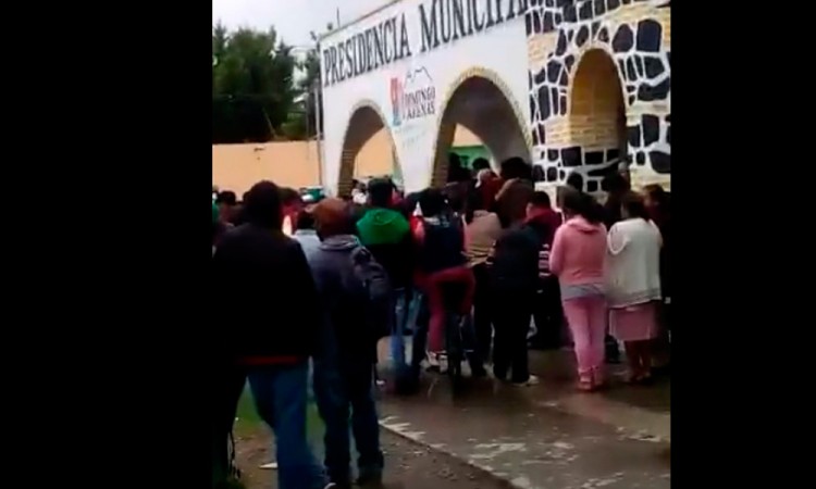 La tarde de ayer, al filo de las 17:30 horas, dos sujetos fueron asegurados señalados de intentar ingresar a robar en un domicilio del municipio de Domingo Arenas. Los sospechosos fueron llevados a la Presidencia Municipal y al poco rato varios pobladores se reunieron para exigir que les fueran entregados, pues pretendían hacer justicia por propia mano, señalando estar hartos de la ola delictiva en la demarcación. No obstante, las autoridades locales se negaron a entregarlos, hecho que enardeció a los casi 200 pobladores que ya se habían reunido en la zona, por lo cual amenazaron con ingresar al recinto para sacar a los señalados y entonces lincharlos. Por lo anterior se solicitó la presencia de elementos de la Policía Estatal, pues los iracundos pobladores permanecían en la plaza principal, donde pretendían ajusticiar a los individuos.