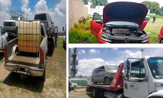 Personal del Ejército Mexicano, en coordinación con la Policía Estatal, logró asegurar en San Martín Texmelucan y municipios cercanos 33 vehículos y 47 mil 100 litros de diesel. Durante esas acciones, resultado de las labores de vigilancia, también lograron ubicar 10 tomas clandestinas que fueron reportadas a los técnicos de Petróleos Mexicanos (Pemex). También aseguraron cuatro armas largas y un cargador abastecido. Estos aseguramientos ocurrieron del 14 al 21 de julio, en diferentes puntos de aquella zona, la cual se ha convertido en una de las más aquejadas por el robo de combustible y por tanto una de las más vigiladas. |