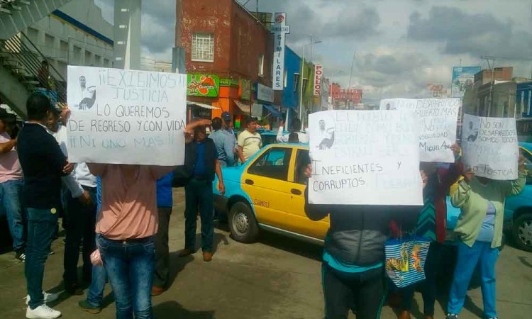 Un grupo de más de 40 personas entre familiares y taxistas bloquearon el acceso a San Martín en protesta por la falta de avances en la investigación de la desaparición de Miguel Cante Castro quien fue visto por última vez el pasado 25 de agosto. Cerca de las 9:30 de la mañana el contingente se reunión en el zócalo de la ciudad donde se llevaba a cabo una jornada de servicios del gobierno del estado para exigir a las autoridades estatales esclarecer la desaparición de Miguel Cante Castro. Entre consignas y cartulinas en las que pedían justicia y solicitaban información sobre las investigaciones del caso los manifestantes permanecieron en la plancha del zócalo unos minutos y ante la falta de respuesta se dirigieron a la avenida Libertad donde bloquearon el paso de automóviles. Miguel Ángel Cante Castro es operador de un taxi de sitio en la ciudad de San Martín y sus familiares y colegas tuvieron noticias por última vez el 25 de agosto pasado, tras no saber más de él la familia procedió a levantar una denuncia por desaparición. El lunes 27 de agosto el taxi con el número 32 que conducía Miguel Cante fue localizado en la comunidad de Santa Ana Xamimilulco del municipio de Huejotzingo, contrario a lo que se esperaba, el vehículo estaba intacto. Ante esta situación, un grupo de taxistas de Texmelucan, Huejotzingo, e incluso de la ciudad de Puebla, acompañados por familiares y amigos del conductor desaparecido, se dieron a la tarea de hacer un rastreo por terrenos de cultivo cercanos al punto donde fue encontrado el taxi, esto con la esperanza de encontrar al conductor. En ese momento los familiares denunciaron que la Fiscalía General del Estado (FGE) no había iniciado con las investigaciones a pesar de que ya estaba la denuncia. Los familiares acusaron a la fiscalía de no haber realizado su trabajo pues afirmaron que toda la información que consta en la carpeta de averiguaciones previas del caso es información que la misma familia ha proporcionado. Al final, retiraron el bloqueo con la promesa de que este viernes serían atendidos en las instalaciones de la fiscalía, sin embargo, adelantaron que de no ser así, realizarán otra manifestación. |