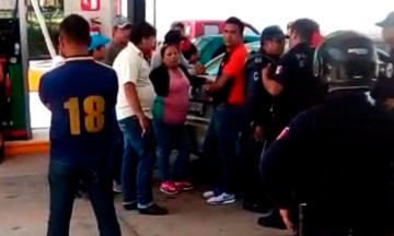 Detienen a la presunta líder del robo de gas en la zona de Villa Frontera, fue detenida junto con un hombre, presumiblemente su cómplice. La aprehensión de estas dos personas ocurrió alrededor del mediodía de este miércoles en la gasolinera ubicada en la lateral de la autopista, a la altura de la Central de Abasto. Minutos antes de las 12 horas, una mujer y un hombre llegaron a bordo de una camioneta guinda, cerrada, a la gasolinera mencionada, lo seguían agentes en un vehículo Jetta color gris. La mujer gritaba pidiendo auxilio, indicaba que la querían secuestrar. Después los agentes indicaron a los presentes que era una detención, y pidieron que guardaran la distancia. En cuestión de minutos familiares y conocidos del hombre y la mujer llegaron hasta el lugar para intentar impedir la detención. Ante el gran número de civiles, los agentes pidieron refuerzos y por ello llegaron rápidamente más elementos de la policía estatal, municipal, Federal, Gendarmería y Ejército Mexicano. Así es como con una muestra de fuerza pública y con la utilización de un aparato sonoro de disuasión, lograron controlar la situación y detener al hombre y la mujer. Personas entrevistadas en la zona de la Central de Abasto, señalaron que la camioneta en cuestión, la guinda, la identifican como una unidad propiedad de una mujer a la que la vox populi identifica como la lideresa de los huachicoleros en la zona. "Aquí todo mundo dice que esa señora es la jefa de los que roban gas en la zona. A la mejor es la que ocasionó la fuga de gas de la semana pasada", señaló una persona, quien pidió que se le mantuviera en anonimato. Hasta el cierre de esta edición no había información oficial a cerca de esta detención, es decir se desconocían formalmente las acusaciones en contra de esta pareja.