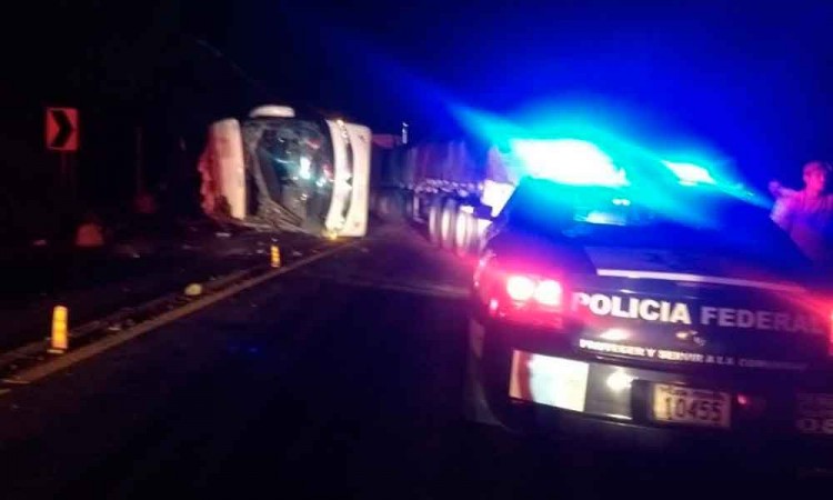 Dos personas muertas fue el saldo que dejó un accidente carretero en el kilómetro 164+700 del Camino Nacional, Tulancingo-Tihuatlán, en el tramo Nuevo Necaxa-Villa Ávila Camacho. Un ómnibus de la marca Irizar, color blanco, con placas de circulación 207JV5 del Servicio Público Federal, chocó contera un talud, posteriormente volcó y chocó contra un tráiler, con tractiocamión azul de la marca Volvo, con placas de circulación 15AE4H, tipo T-3, el cual llevaba acoplado un semirremolque S-3, color blanco, con placas 250WG2. Fue por la madrugada de este miércoles 26 de septiembre cuando ocurrió este percance en la carretera de cuota mencionada, se presume que la velocidad inmoderada, hizo que el conductor del ómnibus perdiera el control y chocara contra el talud. Posteriormente ese percance ocasionó que el ómnibus chocara contra el tráiler. En el ómnibus perecieron dos personas. En el lugar, según los reportes de la Policía Federal, no se encontró a ninguno de los dos conductores de las unidades involucradas. Los levantamientos de los cuerpos y los peritajes estuvieron a cargo de la Coordinación Puebla de la Policía Federal, de la Estación Huauchinango. El caso lo remitieron ante el Agente del Ministerio Público para las acciones legales del caso. El percance causó el cierre de la autopista por varias horas, lo que creo filas kilométricas de vehículos en la zona.