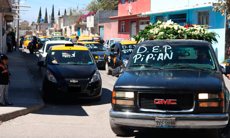 Fue sepultado José Daniel Ocotoxtle Castillo, apodado Pipián, el taxista que fue asesinado el pasado lunes durante el robo de su unidad, la número 12 de la central Diamante, en la colonia Satélite Magisterial. Su última morada se encuentra en el panteón de la colonia Chapultepec, donde fue inhumado a las 14:00 horas de este miércoles. Daniel, fue velado en su domicilio de la colonia Miguel Hidalgo en la ciudad de Puebla, en donde se dio una ceremonia religiosa para despedirlo, estando acompañado de sus familiares, amigos y compañeros del volante. Una caravana de compuesta por cera de 40 taxis, los cuales llevaban desde arreglos florales, o la leyenda "D.E. P Pipián" escrita en el parabrisas, o incluso algunos con una lona con su fotografía, se dieron cita en la casa de Daniel y así fue como escoltaron el cortejo fúnebre hasta llegar al panteón de Chapultepec. Lee: Asesinan a taxista en Satélite MagisterialDurante el camino los taxistas hicieron sonar, una y otra vez, la canción "El Amigo que se fue" del grupo Intocable. Al llegar al campo santo esa música fue sustituida por un mariachi que interpretó sentidas canciones. En el panteón los taxistas pasaron lista a Daniel, y elevaron un grito al unísono: "¡Justicia, justicia, justicia!" se les escuchó clamar. En otro momento se escuchó que alguien gritó: "¿Qué es lo que queremos los taxistas?" y la respuesta nuevamente fue "justicia". Cabe recordar que Pipián, como le decían de cariño sus amigos, fue asesinado por un hombre y una mujer que se hicieron pasar por pasajeros para robarle el vehículo Nissan, Versa, marcado con el número 12, con placas 4479SSL.