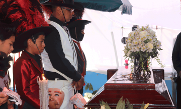 La cuadrilla de huehues "Analco la 5", de la 5 Oriente, acudieron con sus vestimentas típicas para despedir a su querido amigo y compañero "Boyo", quien el pasado domingo fue asesinado de varios balazos cuando bailaba en calles de la colonia Playas del Sur. Sin duda el momento más emotivo y simbólico del sepelio fue cuando su hijo de 4 años llegó a despedirse de él, yendo vestido de huehue, con todo y capa, sosteniendo entre sus manos la máscara que su padre llevó durante 15 años. Simbolizando la continuidad y el traspaso de la tradición, el pequeño de cuatro años se paró frente al ataúd, perfectamente ataviado de huehue, zapatos bicolores – negro con blanco –, pantalón blanco, camisa negra y encima un chaleco blanco, una capa sombrero con plumas y sin faltar una máscara, de esa forma sostuvo entre sus manos la máscara que durante años acompañó a su padre en los carnavales. También lee: Asesinan a huehue durante carnaval de Huejotzingo Decenas de sus compañeros huehues, de su cuadrilla y de algunas otras, acudieron hasta el domicilio ubicado en la 5 Oriente entre la 14 y 16 Sur del barrio de Analco, para acompañar a José Martín Tornero Cerón, quien contaba con 23 años. Con sus vestimentas de carnaval y música, cargaron el féretro y marcharon tras de él hasta el bulevar Héroes 5 de Mayo, en donde subieron el ataúd a la carroza y el cortejo abordó los vehículos.