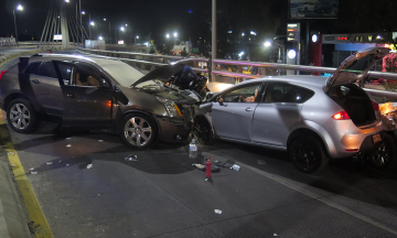 Un conductor en estado de ebriedad que manejaba en sentido contrario una camioneta de lujo, ocasionó una colisión múltiple donde estuvieron involucrados tres automotores en San Andrés Cholula. El joven responsable resultó herido mientras que los ocupantes de las otras unidades no resultaron lesionados. A las 21:35 horas del pasado jueves ocurrió la colisión en el viaducto elevado de la Recta a Cholula, con dirección a San Pedro Cholula. De acuerdo con testigos, una camioneta Cadillac SRX color arena, con matrícula M07AUE de la Ciudad de México, circulaba en sentido contrario sobre el puente. Al tomar una curva, la unidad impactó contra una estructura de concreto que sostiene los tirantes del puente y luego regresó a la vialidad. Lee: Corren a subdirector de custodios del penal de San PedroPosteriormente se impactó contra un automóvil Seat León color plata, con placas HRU753A, que a su vez fue chocado por alcance por una camioneta Ford, Eco-Sport plata, placas UAP7416. Los tres vehículos quedaron atravesados sobre la vialidad e impidieron el paso por completo y la camioneta arena registró un corto circuito. El incendio fue atendido de inmediato. Algunos automovilistas se detuvieron para auxiliar a los ocupantes de los vehículos siniestrados y señalizar la zona antes del arribo de agentes de Vialidad Estatal.