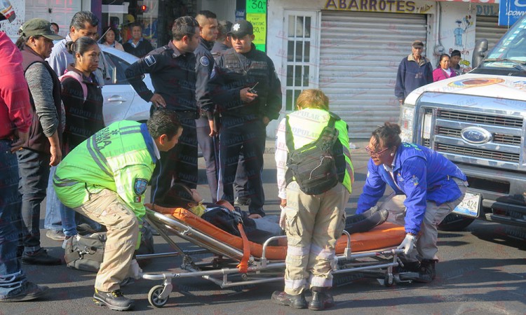 Una estudiante que intentaba atravesar una vialidad para llegar a la escuela, terminó lesionada al ser embestida por una motocicleta en la junta auxiliar de San Francisco Totimehuacán. Fotos: Jesus Lima El motociclista involucrado se quedó en el lugar para pedir el apoyo de los cuerpos de emergencia; aseguró que se haría cargo de los gastos médicos. El accidente ocurrió minutos antes de las 8:00 de la mañana de este miércoles, en la carretera a Valsequillo casi esquina con la calle Ignacio Zaragoza, a unos metros de la presidencia auxiliar. Testigos informaron que la menor de edad estaba cruzando la vialidad sobre los carriles con dirección al Periférico; además lo hizo a media calle. También reportaron que la motocicleta Honda de color rojo con placas de Puebla, se entreveraba con los automóviles. Leer: Disparan a guardia de una panadería en TehuacánLa estudiante fue impactada y quedó tirada sobre la cinta asfáltica. De inmediato el motociclista dejó su unidad, cubriendo a la joven para evitar otro percance. El 911 recibió el reporte y envió a policías municipales, quienes señalizaron la vía y posteriormente acudieron paramédicos del SUMA para atender a la menor. La estudiante no presentaba lesiones de gravedad. Sin embargo fue ingresada a la ambulancia 089 y trasladada a la Cruz Roja, mientras que el motociclista fue llevado al sector de peritos. |