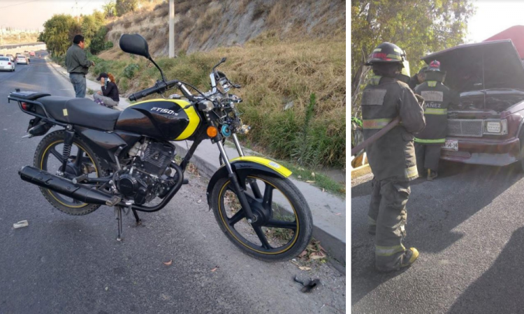 Un par de incidentes vehiculares se registraron la mañana de este día sobre el Periférico Ecológico, que dejaron a una persona lesionada. Los hechos ocurrieron en los últimos kilómetros de la vialidad y tan sólo con minutos de diferencia entre ambos sucesos. Alrededor de las 8:00 horas una camioneta Chevrotet, color rojo, con placas MZW-54-14 del Estado de México, circulaba sobre el Periférico, casi a la altura de la autopista Puebla-Orizaba. En ese lugar comenzó a incendiarse en la zona del motor, aparentemente por una falla en el sistema eléctrico. Puedes leer: Choque frontal deja dos muertos en la Amozoc-PeroteEl conductor llevaba un extintor de polvo químico seco, con el cual pudo controlar las llamas y sólo resultó afectada 10 por ciento del área. Bomberos arribaron al lugar desconectando la batería y otros cables, además realizaron una revisión minuciosa para descartar otro riesgo. Minutos después ocurrió el derrape de una motocicleta sobre la misma vialidad pero a la altura del kilómetro 23+500. Se informó que una pareja viajaba en una moto Italika, de color negro con verde y placas GEN1K, con dirección a la avenida 11 Sur. Sin embargo, a la altura de la 14 Sur el conductor José Juan, perdió el control y la moto junto con sus ocupantes cayeron al pavimento. Por el golpe resultó lesionada Marta Lilia, quien informó se trasladaría por sus medios a un hospital para la revisión médica. |