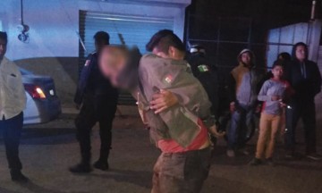 Un sujeto acusado por intentar violar a una joven, recibió una golpiza, terminó amarrado y fue entregado a las autoridades, en el municipio de Amozoc de Mota. La noche del viernes 10 de mayo ocurrieron los hechos en la colonia San Diego Ecatepec, perteneciente a la junta auxiliar de San Salvador Chachapa. Un joven bajó del transporte público en la carretera federal Puebla-Tehuacán y posteriormente comenzó a caminar a su domicilio. Calles adelante se percató que un sujeto la iba siguiendo por lo que comenzó a caminar más rápido pero el varón hizo lo mismo hasta que la alcanzó. El sujeto tomó a la joven y la condujo a un terreno donde se dio un forcejeo y la mujer comenzó a gritar pidiendo ayuda. Vecinos y otras personas que se caminaban por la zona se acercaron y auxiliaron a la joven asegurando al sujeto, de aproximadamente 55 años. También puedes leer: Aseguran a sujeto por golpear a embarazada en OcoyucanLa gente dio una golpiza al sujeto como forma de escarmiento y posteriormente lo amarraron. Varios minutos después se dio el arribo de elementos de la Secretaría de Seguridad Pública (SSP) Estatal, quienes lo aseguraron. El detenido fue retirado del lugar para que la gente no continuará golpeándolo y fue llevado al Centro de Salud y Servicios Ampliados (CESSA) para valoración médica. Se desconoce si la mujer afectada denunció al sujeto y pudo ser presentado ante el Ministerio Público.