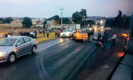 La colisión frontal entre dos vehículos particulares dejó a cuatro personas lesionadas y causó tráfico intenso en la carretera federal a Tlaxcala, en la colonia Barranca Honda. Autoridades informaron que el choque se dio porque una de las unidades invadió el sentido contrario para intentar rebasar. Alrededor de las 19:40 horas de este viernes ocurrió el percance a la altura del kilómetro 9+500. También lee: Por deuda, derrumban casa aun con niña adentro Las unidades involucradas fueron un vehículo Nissan March, color naranja, con placas XWA7162, de Tlaxcala y un automóvil Chevrolet Malibu, color azul, con matrícula 823XZU, de la Ciudad de México. Agentes de Tránsito Municipal de Puebla cerraron la circulación por uno de los carriles y acordonaron el área solicitado el apoyo de paramédicos. Personal de atención prehospitalaria de la Cruz Roja, del SUMA, Protección Civil Municipal y del SOS, atendieron a cuatro personas por lesiones de leves a moderadas. Las cuatro fueron trasladados a hospitales para su atención, mientras que se generó tráfico intenso en el punto por el bloqueo del carril, donde quedaron ambos vehículos.