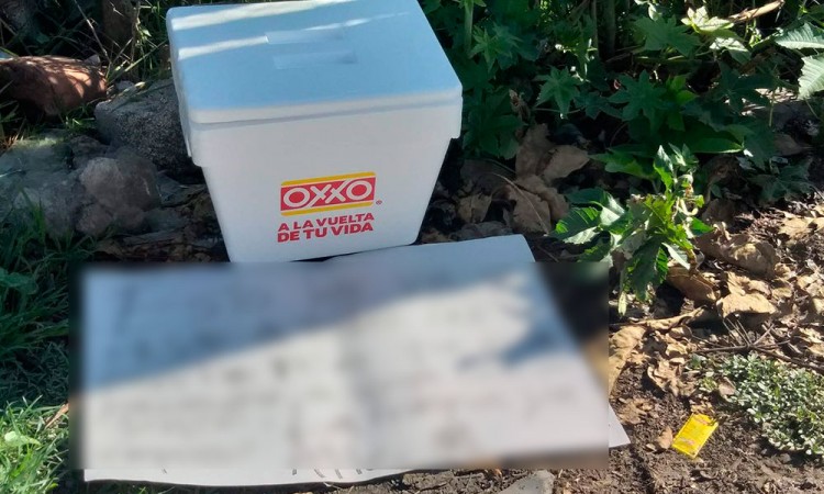 Alrededor de las 10:00 horas de este viernes, vecinos de aquella zona de la ciudad, enviaron fotografías de una hielera de unicel con el logotipo del OXXO, junto a ella una cartulina color blanco, con la leyenda: "Esto les va a pasar a todas las pinches ratas que están pasándose de verga con la gente. La limpia ya empezó. Atte. MM" se lee en la fotografía de la cartulina hecha llegar a medios de comunicación. Puedes Leer: Se enfrentan elementos de policía y maleantes en Tlatlauquitepec