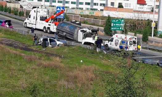 Una pipa de agua terminó volcada luego de chocar por alcance contra un vehículo compacto, en el municipio de San Andrés Cholula. El percance causó lesiones en los dos conductores, pero el que se llevó la peor parte fue el operador de la pipa y tuvo que ser trasladado a un hospital. Cabe recordar que la mañana del pasado lunes en esa misma zona ocurrió el choque y volcadura de una pipa y un auto particular. Aproximadamente a las 8:30 horas de este sábado un automóvil Volkswagen Golf gris, con placas MXA6420, del Estado de México, era conducido por Víctor. Lee: Cierran la autopista México-Tuxpan por volcadura de pipaEn el retorno del Periférico y la Recta a Cholula el vehículo fue impactado por detrás por un tractocamión International con pipa y placas SL70479, manejado por Julián. Por la fuerza del choque el automóvil se salió del camino y quedó en el camellón de la vialidad mientras que la pipa quedó volcada sobre su costado izquierdo. Agentes de Vialidad Estatal cerraron la circulación mientras que paramédicos del SUMA atendieron a ambos conductores. El operador de la pipa resultó herido por lo que fue llevado al nosocomio de la UPAEP, mientras que el otro automovilista fue atendido en el lugar. La circulación estuvo cerrada por un par de horas, mientras personal de grúas maniobraba para reincorporar a la pipa y para retirar los dos automotores. |