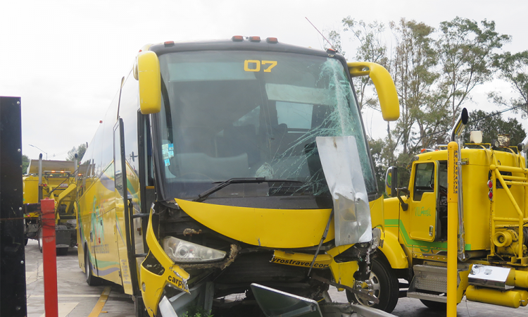 Severos daños materiales y tráfico vehicular fue el resultado de la colisión frontal de un autobús de turismo contra una estructura metálica de señalización vial, la cual derribó, en la junta auxiliar de San Francisco Totimehuacan. El percance ocurrió luego de que otra unidad realizó corte de circulación e impactó al autobús para luego escapar. Pese a que el incidente fue muy aparatoso, no se reportaron personas lesionadas, pues la unidad no llevaba pasajeros. Lee: Reclaman cuerpo de Plaza de Toros de TecamachalcoHacia las 8:30 horas de ayer lunes la unidad 07 de la línea de autobuses Carpinteyros Travel S A de C V, color amarillo y con placas 92RA3B, circulaba sobre el bulevar Valsequillo con sentido a la presa. A la altura de la incorporación a la lateral del Periférico Ecológico, el camión fue impactado en el costado izquierdo por otro vehículo, del que no se dieron características, pues escapó. Debido al golpe, el conductor perdió el control de la unidad, por lo que se subió al camellón y colisionó de frente contra señaléticas viales que terminaron derribadas desde la base. Los cuerpos de emergencia fueron activados y al lugar arribaron agentes de Tránsito Municipal, quienes abanderaron la zona y la señalizaron para evitar otro percance. Los uniformados pidieron el apoyo de personal de grúas para remover la unidad y las labores terminaron varias horas después. |