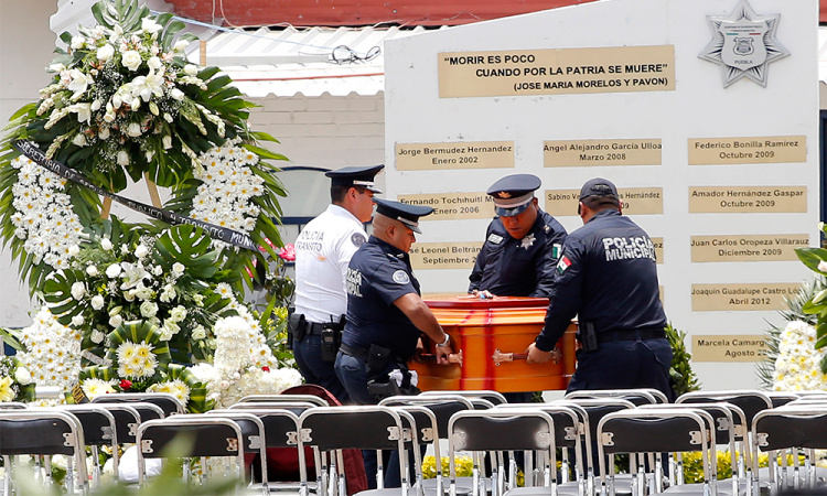 Entre coronas y arreglos florales, torretas encendidas y amigos de armas, llegó el cortejo fúnebre de Francisco Daniel Tela Flores, de 24 años de edad, a las instalaciones de la Secretaría de Seguridad Pública y Tránsito Municipal (SSPTM) para un homenaje. El elemento falleció la madrugada del pasado domingo, mientras recibía atención médica, tras resultar herido de bala durante un enfrentamiento con sujetos armados en la colonia San José Los Cerritos. Alrededor de las 13 horas de ayer lunes llegaron los restos del joven, que laboró como policía municipal por cuatro años y medio, al bulevar San Felipe, en la colonia Rancho Colorado. En el evento, que se realizó a puerta cerrada, se efectuó el pase de lista, donde estuvieron presentes familiares, amigos, compañeros, mandos de la corporación policial y autoridades municipales. Luego de 40 minutos culminó el homenaje y el cortejo fúnebre partió de las instalaciones a un panteón para sepultar a Francisco Daniel. Además del agente, otros cuatro policías municipales resultaron heridos en la balacera del pasado domingo, por impacto de proyectil de arma de fuego y fueron internados en hospitales. La Secretaría de Seguridad y Tránsito Municipal (SSPTM) informó que dos de ellos ya fueron dados de alta y otros dos permanecían internados delicados pero estables. Lee: Vigilarán 450 elementos de la Guardia Nacional la Sierra Norte poblanaLa agresiónEl pasado 7 de julio Francisco Daniel y sus compañeros agentes acudieron a un reporte de sujetos armados que realizaban detonaciones. Al arribar, fueron atacados y repelieron la agresión. Posteriormente se desplegó un operativo donde tres sujetos fueron asegurados por su presunta participación en la agresión a los elementos, a quienes les decomisaron un vehículo de lujo, cartuchos de diferentes calibres, chalecos balísticos y ropa tipo militar. |