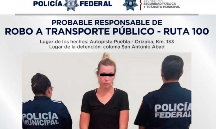 Cristina, de 31 años de edad, originaria de Oklahoma, Estados Unidos, señalada por asaltar a usuarios del transporte público, fue asegurada por elementos de la Policía Federal (PF) y Policía Municipal, en la colonia San Antonio Abad, en al ciudad de Puebla. La detención ocurrió la tarde del martes 9 de julio, en inmediaciones de la autopista Puebla-Orizaba, a la altura del kilómetro 133. Reportes policiales señalan que la mujer y dos sujetos más abordaron una ruta 100, a la altura del puente de la junta auxiliar de La Resurrección amagaron a los pasajeros y los despojaron de sus pertenencias. Instantes después los delincuentes descendieron y comenzaron a correr intentando escapar por lo que fueron perseguidos por usuarios del transporte público, quienes pidieron el apoyo de policías federales. Elementos de la Secretaría de Seguridad Pública y Tránsito Municipal (SSPTM) también se sumaron al apoyo. A pesar de que dos sujetos lograron escapar, la mujer pudo ser asegurada en inmediaciones del puente de la colonia San Antonio Abad. La presunta asaltante fue puesta a disposición de la Fiscalía General del Estado (FGE) para las investigaciones del caso y definir su situación legal.