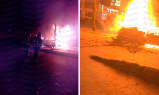 Un automóvil terminó calcinado luego de colisionar, durante la madrugada de este sábado, en la colonia Estrellas del Sur. A pesar de lo aparatoso del percance, no se reportaron personas lesionadas, pues la unidad fue abandonada. Minutos antes de las 2:00 horas de este 3 de agosto, automovilistas reportaron al 911 la presencia de un vehículo en llamas, en la Calzada Zavaleta. Por el incendio también se registraron algunos estallidos al interior del vehículo, por lo que se pidió el apoyo de los cuerpos de auxilio. Agentes de la Policía Municipal y del cuerpo de Bomberos Puebla se trasladaron a la citada vialidad y a la altura del bulevar Atlixco, ubicaron la conflagración. Con la unidad Escala los vulcanos aplicaron chorros de agua para sofocar las llamas que alcanzaron los cuatro metros de altura. También puedes leer: Asaltan y roban tienda AT&T en la Pino SuárezMinutos más tarde el incendio fue apagado en su totalidad y ahí se pudo determinar que se trataba de un automóvil Peugeot, con placas UAB-8467. Las autoridades realizaron una inspección al interior de la unidad descartando la presencia de personas, así como de riesgos en el lugar. En la zona tampoco se ubicó al conductor o pasajeros del vehículo, que más tarde fue remolcado para despejar la carpeta asfáltica. |