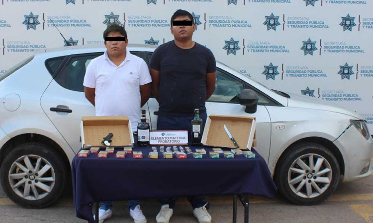 La Secretaría de Seguridad y Tránsito Municipal (SSPTM) de Puebla detuvo en San Francisco Totimehuacán a Marco Antonio “N.” y Miguel Ángel “N.”, de 23 y 22 años de edad, respectivamente, por su probable participación en hechos con apariencia de delito de robo a negocio. Policías Municipales adscritos a la Región Sur, Zona 9, circulaban sobre la Prolongación 10 Norte, cuando se percataron que una empleada de una sucursal Oxxo solicitó apoyo, para detener a dos hombres quienes viajaban a bordo de un vehículo, que momentos antes cometieron un robo al interior del local donde labora. También puedes leer: Ruta Bicentenario colisiona y derriba un poste de luz en Jardines de San ManuelDe inmediato, los elementos iniciaron una persecución que culminó metros adelante con la detención de la unidad y ambos individuos. Asimismo, se logró la recuperación de botellas de licor, cajetillas de cigarros y dinero en efectivo. Aunado a ello, se aseguró un arma de fuego, tres cartuchos útiles y un objeto punzocortante. Con base en labores de inteligencia policial, se presume que los ahora detenidos estarían relacionados en al menos 14 eventos delictivos más. También, se estableció que operaban los municipios de Acajete, Amozoc, Cuautlancingo, Puebla, San Andrés y San Pedro Cholula. Los indiciados junto con los elementos materiales probatorios, quedaron a disposición del Agente del Ministerio Público para la apertura de la Carpeta de Investigación correspondiente.