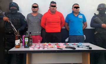 Policías de Zacatelco, Tlaxcala, lograron la detención de una banda de ladrones dedicada al robo de tiendas OXXO. Se trata de tres sujetos que habían asaltado una tienda de conveniencia en San Luis Teolocholco, los cuales escapaban a toda velocidad, pero fueron atrapados a su paso por Zacatelco. Los hechos ocurrieron la tarde del pasado sábado, alrededor de las 18:30 horas, cuando elementos del Grupo Halcón, de la policía municipal de Zacatelco, fueron notificados que policías de San Luis Teolocholco, iban en persecución de los ladrones. Se indicó que los delincuentes escapaban en un Chevrolet, Chevy, color gris, con placas del Estado de México, los cuales habían asaltado una tienda OXXO, donde lograron sustraer dinero en efectivo, cajetillas de cigarros y botellas de licor. Lee: De 5 disparos asesinan a empresario de TehuacánAnte la alerta que emitieron los policías de Teolocholco, los policías de Zacatelco implementaron un dispositivo de seguridad, al tener a la vista el vehículo en el que escapaban los delincuentes los persiguieron, interceptaron y detuvieron. A estos hombres se les aseguró un Chevy, dos armas de fuego, así como la mercancía que habían robado momentos antes.
