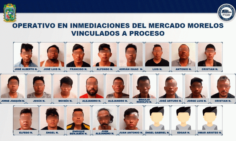 La Fiscalía General del Estado de Puebla logró la vinculación a proceso del total de personas puestas a disposición. Presentó elementos de prueba por hechos con apariencia del delito de secuestro, presuntamente cometidos por 25 hombres detenidos en inmediaciones del mercado Morelos de la capital poblana. El lunes 21 de octubre, cinco personas fueron privadas de la libertad en alrededores del mercado en mención. Las víctimas fueron llevadas a una bodega de la calle 46 A Norte entre la 16 y 20 Oriente donde sus captores las habrían golpeado y las mantuvieron retenidas. Horas después siendo el martes 22 de octubre y con la intervención de elementos de la Secretaría de Seguridad Pública del Estado y de la Policía Municipal de Puebla, las víctimas fueron rescatadas. Puedes leer: Tras balear vivienda detienen a 30 sujetos en el Mercado MorelosEn el lugar las autoridades aseguraron a 22 hombres mayores de edad y a tres adolescentes presuntamente relacionados con los hechos, quienes quedaron a disposición de la Fiscalía de Secuestro y Delitos de Alto Impacto y de la Unidad Especializada en Justicia para Adolescentes de la Fiscalía General del Estado de Puebla. A los detenidos se les aseguraron armas largas y cortas, varias de alto poder, además de droga. La Fiscalía recabó datos de prueba que presentó ante los Jueces de Control competentes, lo que derivó en que los 25 presuntos responsables quedaran vinculados a proceso por el delito de secuestro agravado. Como medida cautelar, los 22 adultos permanecerán en prisión preventiva durante cuatro meses y los tres menores de edad en internamiento durante mes y medio, correspondientes al tiempo de la investigación complementaria a cargo de la Fiscalía General del Estado de Puebla.