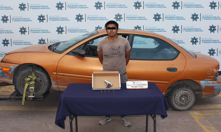 La Secretaría de Seguridad Ciudadana (SSC) del municipio de Puebla detuvo en la colonia San Ramón a Jesús “N.”, de 30 años de edad, por su probable participación en hechos con apariencia de delito de portación de arma de fuego sin la licencia correspondiente. Policías Municipales adscritos al Grupo de Intervención Proactiva (GIP), realizaban labores de vigilancia sobre la calle Gardenias cuando sorprendieron a un masculino que miccionaba en la vía pública. En consecuencia, los elementos se dirigieron al varón para informarle que dicho comportamiento constituía una falta administrativa, conforme al Código Reglamentario Municipal (COREMUN). Puedes leer: Se hacen de palabras, lo matan a pedradas en AmozocDurante el proceso de entrevista con el infractor, los efectivos descubrieron que tenía entre sus pertenencias un arma de fuego, tipo escuadra, junto con cuatro cartuchos útiles. Al no contar con la documentación necesaria para acreditar su legal portación, se procedió a la detención de Jesús “N.”. Asimismo, se aseguró un vehículo Dodge, Neón, color naranja, en el cual se transportaba el ahora detenido. El indiciado junto con los elementos materiales probatorios, quedaron a disposición del Agente del Ministerio Público para la apertura de la Carpeta de Investigación correspondiente.