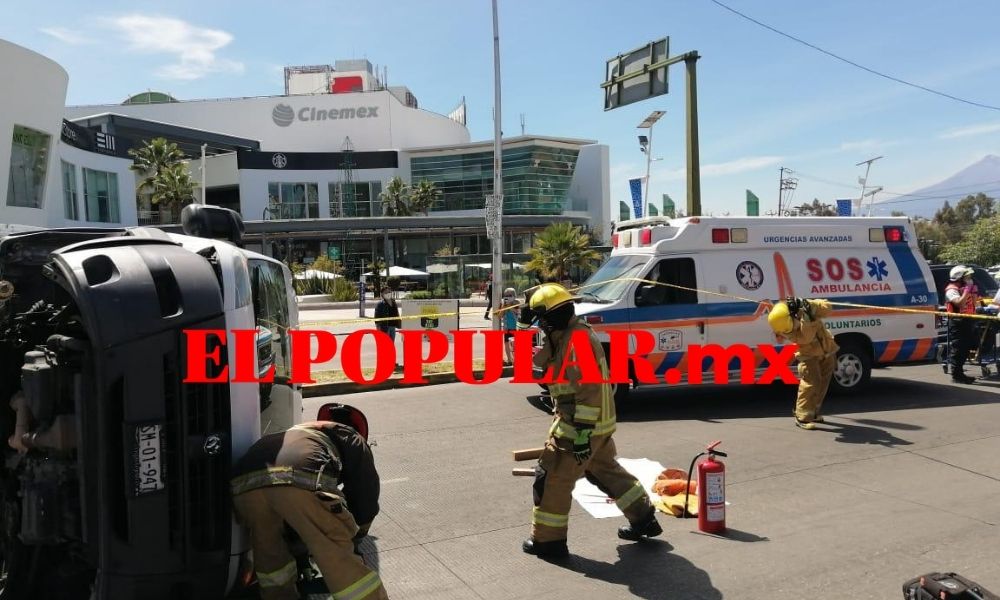 Personal de emergencia de dos corporaciones trabajaron para poder extraer al conductor y luego para su traslado a un nosocomio y el percance provocó tráfico en la zona. El percance ocurrió minutos antes de las 13 horas de este domingo cuando una camioneta Dodge blanca, tipo Van, se desplazaba sobre el Circuito Juan Pablo II. El automotor circulaba con dirección al bulevar Atlixco, pero frente al centro comercial Triángulo Las Ánimas el automovilista perdió el control de la camioneta. Por lo anterior la unidad se subió a la banqueta y se estrelló contra una luminaria por lo que posteriormente se volcó y quedó sobre su costado izquierdo, atravesada sobre la cinta asfáltica. Técnicos en urgencias médicas del grupo SOS y personal de Protección Civil (PC) Municipal acudieron para atender la emergencia. Los elementos de auxilio sacaron al automovilista por el parabrisas y posteriormente brindaron la atención inicial por lesiones, principalmente en los brazos.