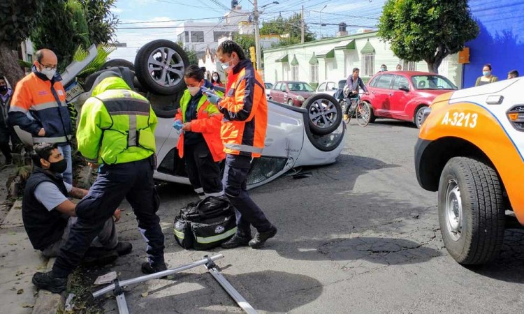 El choque entre dos vehículos particulares causó la volcadura de uno de ellos y dejó a una persona lesionada, en la colonia Santa Cruz Los Ángeles. La mañana de este martes 12 de enero ocurrió el hecho de tránsito sobre la calle 33 Sur, entre las calles 25 y 27 Poniente. Alrededor de las 11:00 horas un vehículo Renault Sandero, color blanco, fue impactado por un automóvil Chevrolet Sonic, color azul. Por el impacto la unidad blanca terminó volcado sobre su toldo y vecinos auxiliaron al conductor, además pidieron el apoyo de técnicos en urgencias médicas y de peritos de Tránsito Municipal. Paramédicos y rescatistas de Protección Civil (PC) Municipal valoraron a Uriel, de 23 años, quien sufrió una herida de un centímetro en el cráneo. Debido a dicha herida no era de gravedad los paramédicos aplicaron curaciones, sin que fuera necesario su traslado a un centro hospitalario. El joven permaneció en el lugar en espera de sus familiares. Los elementos de PC también inspeccionaron el vehículo como mitigación de riesgo. Agentes de Tránsito Municipal realizaron el peritaje y trasladaron a los dos conductores al sector de servicios periciales para buscar un acuerdo.