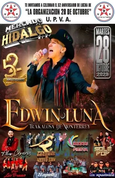 Ante la cercanía del concierto gratuito de Edwin Luna, previsto como parte de los festejos por el aniversario de la Unión Popular de Vendedores Ambulantes (UPVA) 28 de Octubre, el Ayuntamiento de Puebla confirmó que desplegará un operativo especial de seguridad en la zona del Mercado Miguel Hidalgo, donde se realizará el evento el próximo martes. El anuncio fue hecho por el titular de la Secretaría de Gobernación Municipal (Segom), Franco Rodríguez, quien informó que se establecerá un acompañamiento institucional coordinado con los organizadores, con el objetivo de garantizar la tranquilidad de los asistentes. El funcionario municipal enfatizó que, debido a la naturaleza masiva del evento y a los antecedentes recientes de amenazas dirigidas tanto al cantante como a los líderes de la organización, la seguridad será prioridad máxima para las autoridades locales.