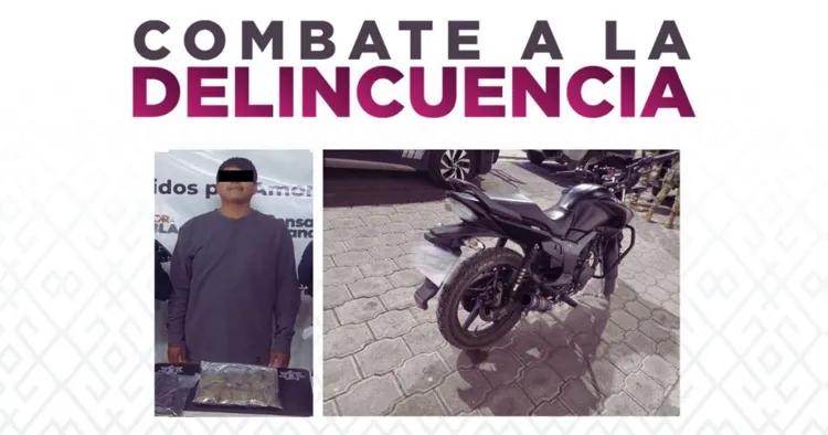 Un operativo coordinado entre corporaciones de los tres niveles de gobierno permitió la detención de un presunto distribuidor de droga en Tehuacán, tras una persecución en la junta auxiliar de San Vicente Ferrer. Elementos de la Policía Municipal, adscritos a la Dirección de Seguridad Pública de Tehuacán, lograron la detención de un masculino identificado como Alain N., alias “Vicentillo”, en inmediaciones de la Inspectoría de San Vicente Ferrer, luego de que intentara evadir a los uniformados a bordo de una motocicleta. Te puede interesar: Vecino Vigilante fortalece prevención del delito en Tehuacán De acuerdo con el informe oficial, al realizarle una inspección preventiva, los agentes localizaron entre sus pertenencias 13 bolsas de plástico que contenían hierba verde seca con características propias de la marihuana, motivo por el cual fue asegurado. Las líneas de investigación abiertas por las autoridades sugieren que el detenido podría estar vinculado con posibles hechos de robo, además de su presunta participación en delitos contra la salud. El detenido fue trasladado y puesto a disposición de la Fiscalía General del Estado (FGE), donde se determinará su situación jurídica conforme a derecho. |