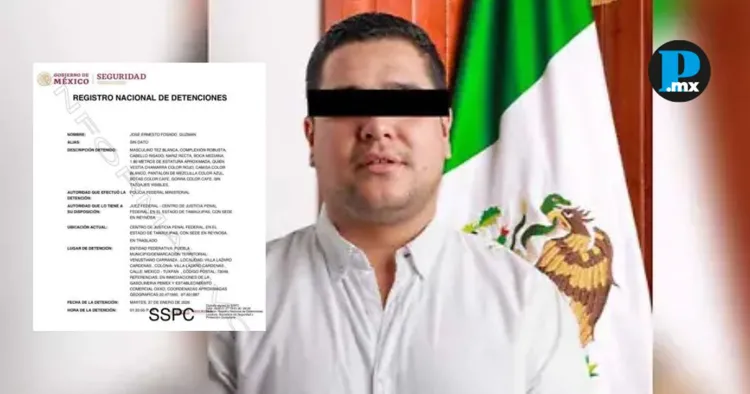 Autoridades informaron sobre la detención de José Ernesto Fosado Guzmán, regidor de Gobernación del ayuntamiento de Venustiano Carranza, realizada por la Policía Federal Ministerial y puesta a disposición de un juez federal en el estado de Tamaulipas. De acuerdo con la ficha oficial, la detención ocurrió el martes 27 de enero de 2026, a las 13:35 horas, en la localidad de Villa Lázaro Cárdenas, municipio de Venustiano Carranza, sobre la carretera México–Tuxpan, en las inmediaciones de una gasolinera Pemex y una tienda Oxxo. La aprehensión del funcionario fue confirmada a través del Registro Nacional de Detenciones y por la Secretaría de Seguridad y Protección Ciudadana. Al momento de su aprehensión, el regidor vestía chamarra roja, camisa blanca, pantalón de mezclilla azul, botas café y gorra café, sin presentar tatuajes visibles. El RND lo describe como masculino, de tez blanca, complexión robusta, cabello rizado, nariz recta, boca mediana y con una estatura aproximada de 1.80 metros. Te puede interesar: Capturan a sospechoso por incendio provocado en la puerta de la Catedral de Puebla Tras la detención, fue trasladado al Centro de Justicia Penal Federal en Reynosa, Tamaulipas, donde permanece bajo disposición de la autoridad judicial federal. Hasta el momento, no se ha informado públicamente el delito que motivó la aprehensión, por lo que se mantiene vigente el principio constitucional de presunción de inocencia. Hasta este momento, el Ayuntamiento de Venustiano Carranza, encabezado por el alcalde Marco Antonio Valencia Ávila, no ha fijado una postura pública respecto a la detención del regidor, que fue elegido a través de la fórmula encabezada por los partidos Acción Nacional (PAN) y de la Revolución Institucional (PRI) en las pasadas elecciones.