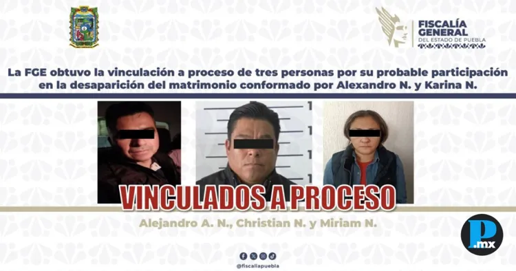 La Fiscalía General del Estado de Puebla (FGE) obtuvo la vinculación a proceso de Christian N., Alejandro A. N. y Miriam N. por su probable participación en el homicidio del matrimonio conformado por Alexandro Tello y Karina Ruiz. En un comunicado publicado la noche del 4 de marzo, un juez de control resolvió durante la continuación de audiencias iniciales realizadas el 2 y 3 de marzo vincular a proceso a los tres imputados y ordenarles la medida cautelar de prisión preventiva. Las tres personas enfrentan cargos por desaparición de personas, feminicidio, homicidio calificado y encubrimiento, mientras continúan las investigaciones sobre el caso. Te puede interesar: Puebla y Tlaxcala mantienen coordinación pese a diferencias por caso Tello Ruiz Detenciones en Puebla y TlaxcalaHace una semana, las fiscalías de Puebla y Tlaxcala reportaron la detención de cinco personas presuntamente relacionadas con la desaparición y asesinato del matrimonio. Los cuerpos de Alexandro Tello y Karina Ruiz fueron localizados el 20 de febrero en la zona limítrofe entre ambas entidades, en el municipio de Chignahuapan. Según la FGE Puebla, se cumplimentaron órdenes de aprehensión contra Alejandro “N.”, Christian “N.” y Miriam “N.”, esta última la única mujer entre los detenidos. Las acciones se realizaron en coordinación con la Secretaría de Seguridad y Protección Ciudadana (SSPC) y la Fiscalía General de Justicia del Estado de Tlaxcala. Entre los señalados se encontraba un hombre identificado como “El Mau”, quien en algunos medios ha sido mencionado como socio y amigo del matrimonio Tello Ruiz. Por su parte, la autoridad tlaxcalteca informó sobre la captura de Alejandro “N.” y Hugo “N.”, presuntamente vinculados con la desaparición de la pareja. Elementos de la Policía de Investigación detuvieron a Hugo “N.” en Apizaco y a Alejandro “N.” en Tetla de la Solidaridad. Te puede interesar: Fiscalía de Puebla informa avances en caso Tello-Ruiz; reporta cinco detenidos y dos líneas de investigación Reconstrucción de los hechosDe acuerdo con la reconstrucción oficial presentada el 2 de marzo por la fiscal Idamis Pastor Betancourt, Alexandro Tello fue citado en Tlaxcala por Alejandro “N.”, lugar al que acudió acompañado de su esposa Karina Ruiz. Posteriormente se perdió contacto con ambos, lo que derivó en la investigación que culminó con el hallazgo de los cuerpos. La fiscal detalló que se mantienen dos líneas principales de investigación: una posible deuda entre particulares y la probable participación de un grupo delictivo, por lo que no se descarta la configuración de delincuencia organizada. Diferencias entre fiscalíasEl caso también generó una controversia entre las fiscalías de Puebla y Tlaxcala debido a las líneas de investigación que cada institución sigue. No obstante, el coordinador del gabinete estatal de Puebla, José Luis García Parra, afirmó que existe una relación de colaboración institucional entre ambos gobiernos y aseguró que el trabajo conjunto continuará hasta el esclarecimiento del caso.