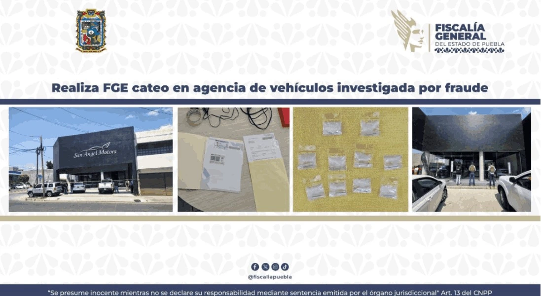 Como parte de una investigación por fraude, la Fiscalía General del Estado de Puebla (FGE) ejecutó una orden de cateo en la agencia de autos “San Ángel Motors”, ubicada en la colonia Prados Agua Azul, en la ciudad de Puebla, donde también se aseguraron diez envoltorios con aparente droga cristal. De acuerdo con la carpeta de investigación, los hechos que originaron el aseguramiento ocurrieron el 4 de febrero de 2026, cuando un ciudadano acudió al establecimiento con la intención de adquirir un vehículo por 260 mil pesos. Te puede interesar: Detienen a militar con arma exclusiva del Ejército en Puebla Durante el proceso de compra, personal de la agencia le solicitó un pago inicial de 138 mil pesos en efectivo para realizar la transacción. Sin embargo, al llegar la fecha acordada para la entrega del automóvil, los empleados del negocio se negaron a cumplir con lo pactado y tampoco realizaron la devolución del dinero. Según el reporte, la persona afectada fue retirada del lugar sin recibir una solución. Tras la denuncia, la FGE inició las diligencias correspondientes y solicitó una orden judicial para continuar con la investigación. El 12 de marzo, agentes de la institución dieron cumplimiento a una orden de cateo, autorizada por un juez de Control de la Región Judicial Centro. La diligencia se llevó a cabo en el inmueble ubicado en calle 49 Poniente esquina con Privada 5 B Sur, donde los agentes localizaron indicios relacionados con la investigación por fraude. También fueron asegurados diez envoltorios con una sustancia granulada de color blanco similar al cristal.